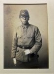 Original period photography. A very nice image of a Japanese Army Sergeant-Major, posing with the hilt of his sword visible.Clear rank insignia, with what appears to be unit numbers on his left collar. In its original cardboard mount. The image itself measures roughly 3 x 5 inches.