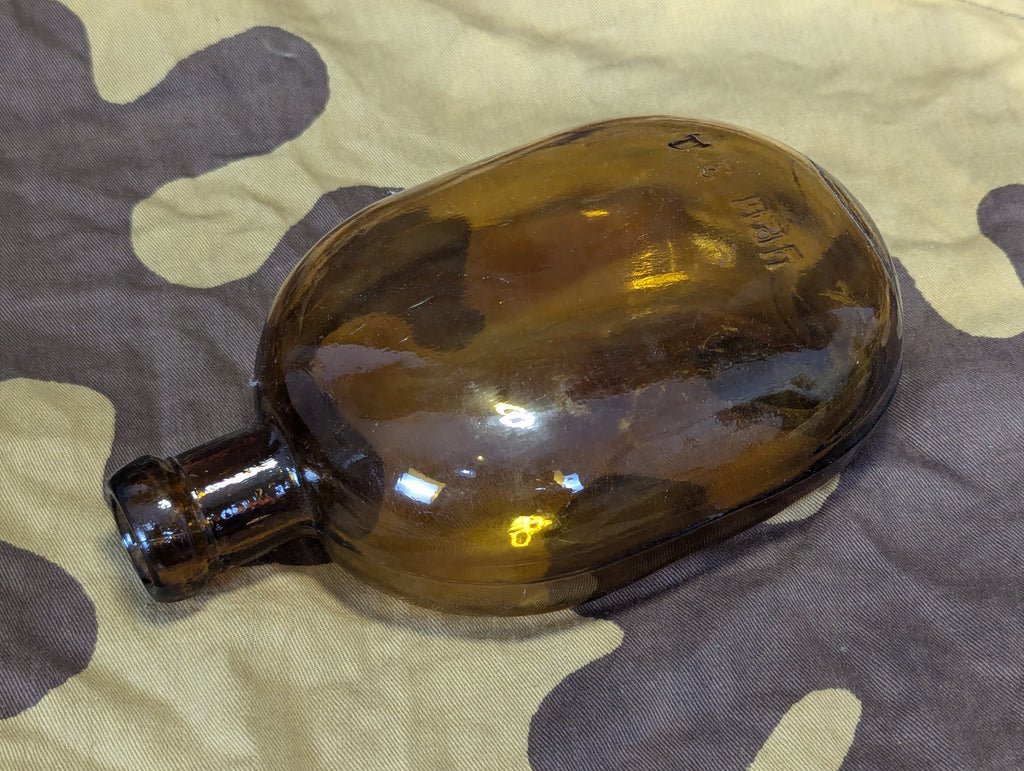 Original brown glass Soviet canteen bottle in good condition. This was from my collection of samples, but I don't believe I feel like making a reproduction anymore so I am releasing this guy back into the wild.