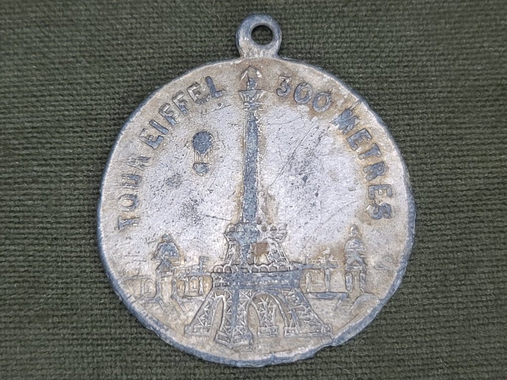 Vintage Eiffel Tower Bastille 1789 1889 charm / fob.Very nice piece of history from the debut of one of the worlds most iconic structures. This is from the Exposition Universelle in 1889 (basically a world's fair held in Paris). The Eiffel Tower was created for this exposition - it was the tallest tower in the world at the time. The event was held on the 100th anniversary of the Storming of the Bastille, which is depicted on the backside of the charm.One side of the piece has the Tour Eiffel 300 Meters and the other side has 1789 La Bastille 1889. AS-IS condition with a lot of wear. The condition is rather rough but it is 135 years old and it is a pretty neat piece of history. Most of the commemorative items produced then were rather boring, but this could actually be put on a necklace or keychain and worn.