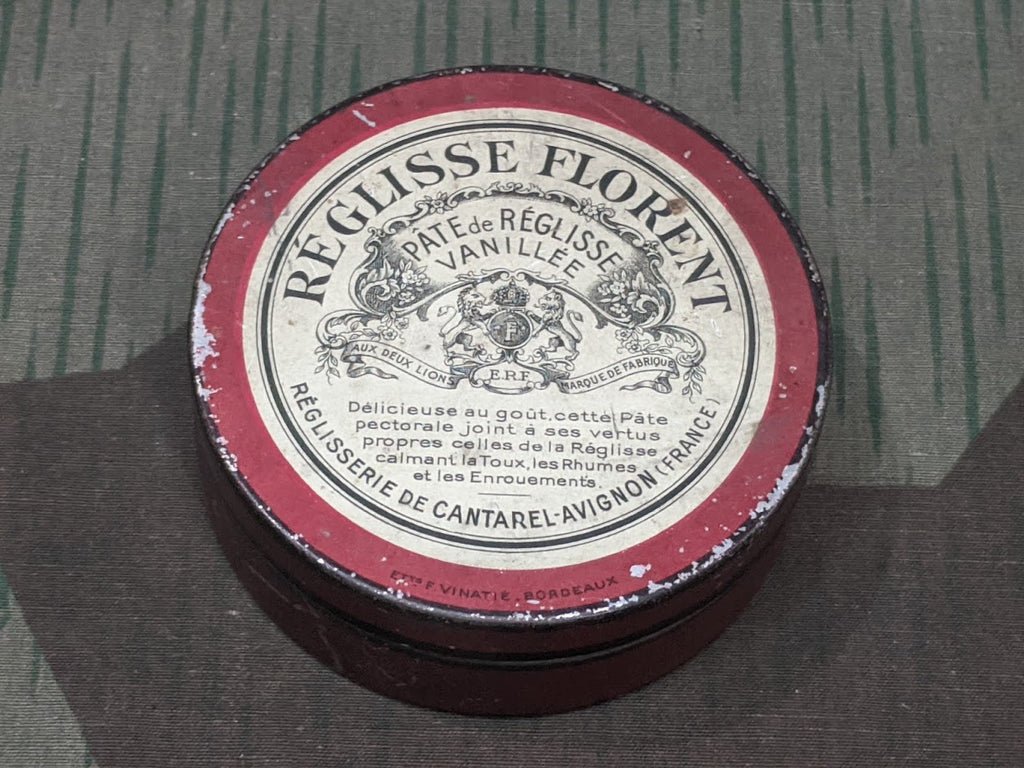 Vintage period correct Réglisse Florent French liquorice tin. In decent condition with some wear. Fairly clean inside.