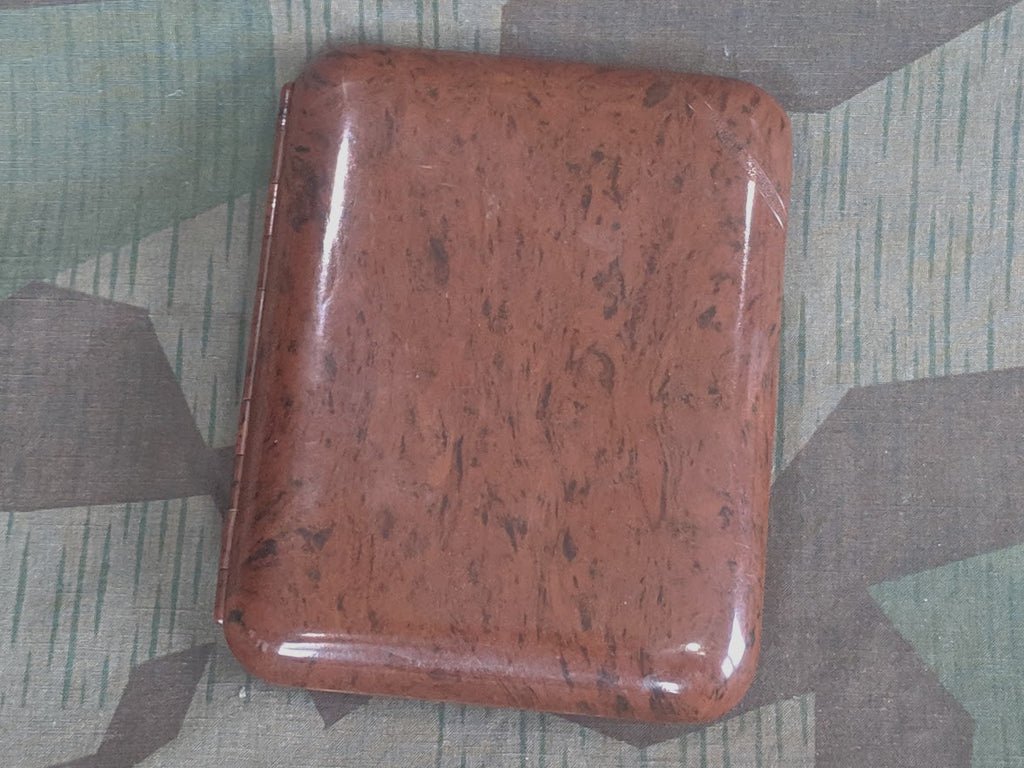 Original, probably pre-war, German Bakelite cigar case for 5 cigars. It is in good condition with minor wear. There are no markings. There is a decorative stripe in the Bakelite in one corner. Nice example.
