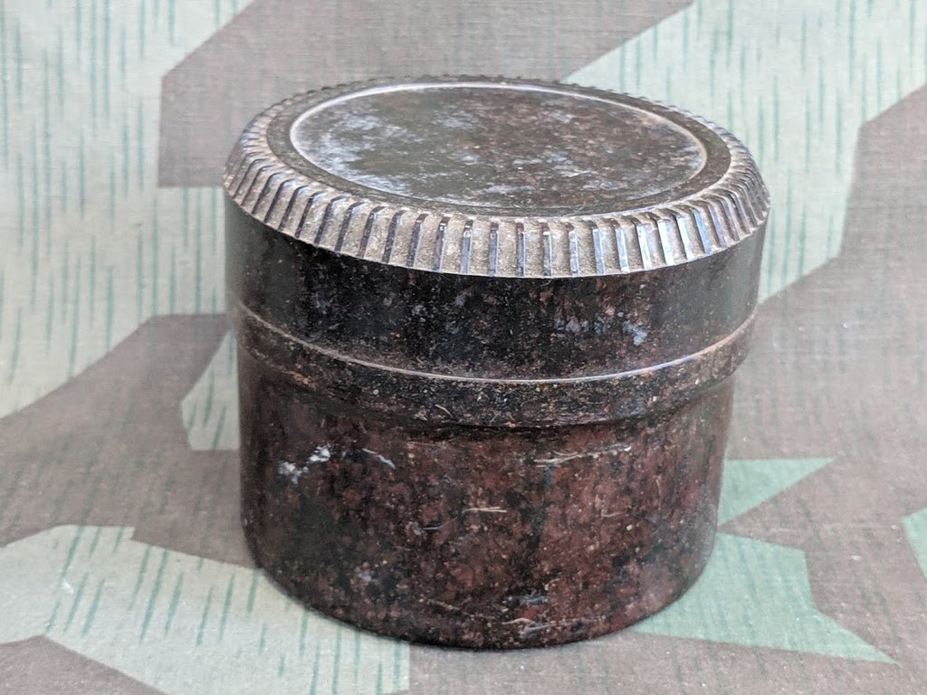 Nice Bakelite container dated 1945. This is known to be both a charge container and also a thermos housing. I do not know which came first, the thermos or its military use as an additional charge container. It is in good condition but needs cleaned. Nice, sturdy container to keep stuff in. It is about 4' tall and 4.5' in diameter.