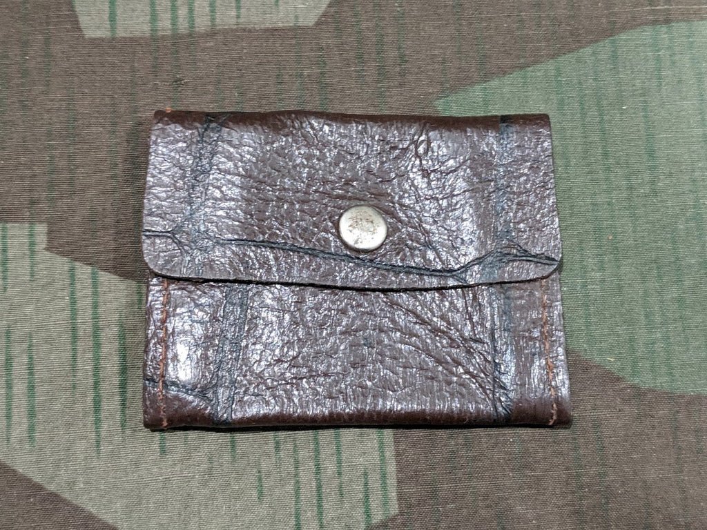 Vintage German brown leather coin purse pouch with snap closure. It is in good condition with light wear and a few rust specks on the snap. It measures about 3 1/8' by 2 3/8'.