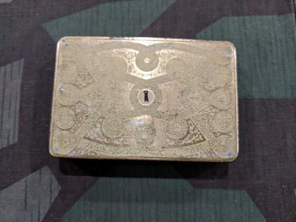 Original Reemtsma Erste Sorte Cigarette sales tin. It is in decent, usable condition with some wear to the finish There are remnants of the tax seal on the back. Reemtsma was a popular brand that frequently advertised in Military magazines like Die Wehrmacht. Great item for reenacting. It measures about 4 1/8' by just over 2 3/4'
