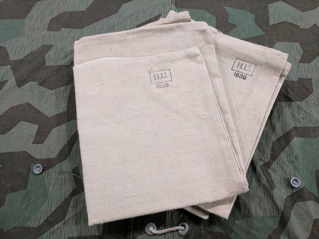 Original un-issued H.U. 1939 German pillow case. This could be stuffed with straw or hay etc... and then put inside the normal pillow case for use. All are in good condition with minor storage wear or a little dirt. I have several examples of original straw mattress pads back home so it was nice to find the pillow to go with them. It measures about 23' x 19 3/4'. Price is for one.