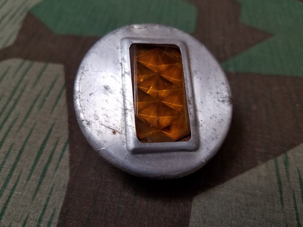 Prewar 1920's-30's German bicycle rear fender reflector in good, usable condition. The glass has a small piece broken off but the remaining glass is stable. There is a modern lock nut on the back but you could pick up the correct nut. Very nice accessory for your fahrrad. It is a great looking reflector and I am sure a lot of other bike owners will ask you about it.