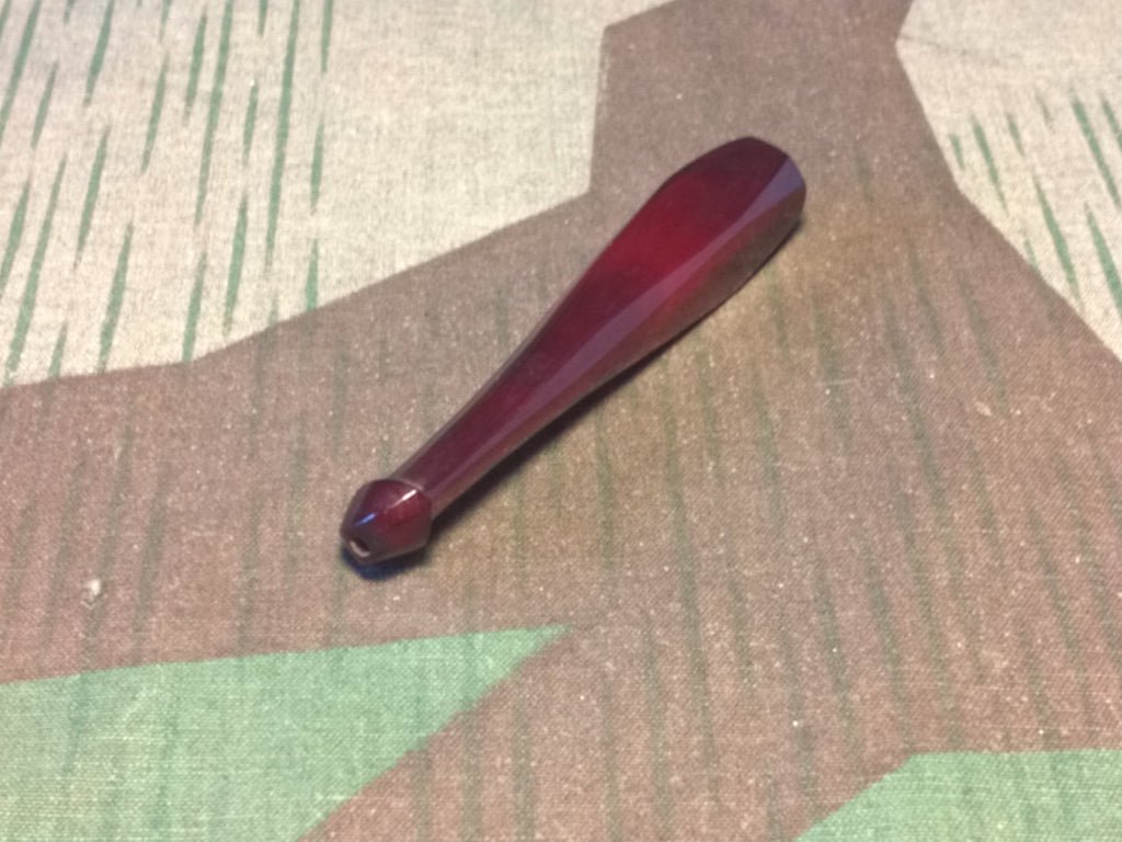 Period German dark red Bakelite? cigarette holder. There are no markings. It is like new and in good condition. It measures just under 2 3/4'.