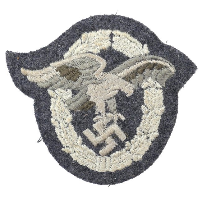 Cloth Version (Stoffausführung) of the Luftwaffe Observer Badge (Beobachterabzeichen). The Observer's badge was was one of the first badges for which 'Reichsmarchall Hermann Göring' gave specifications for. Although these provisions were published on 27 November 1935, the badge was not actually instituted until 26 march 1936. The badge was awarded after completion of two month qualifying service, after five operational flight as observer, or if the recipient was wounded while posted as observer (prior to the completion of the 5 flights). This badge is a nicely machine-embroidered multi-colour cloth example having a nicely padded canvas backing as intended for wear on the flight jacket. Stunning original coth version of the Observer Badge in mint and unissued condition!