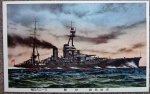 Original period manufacture. Prewar full color card of the Imperial Navy Battleship Ise. Entering service in 1917, she was converted in mid-1942 with a flight deck added to her hull with the two aft turrets removed. She was considered too old for active service but did see combat in SE Asia late in the war. She was heavily damaged by US carrier aircraft while serving as a floating AA battery. Her hulk was scrapped postwar.