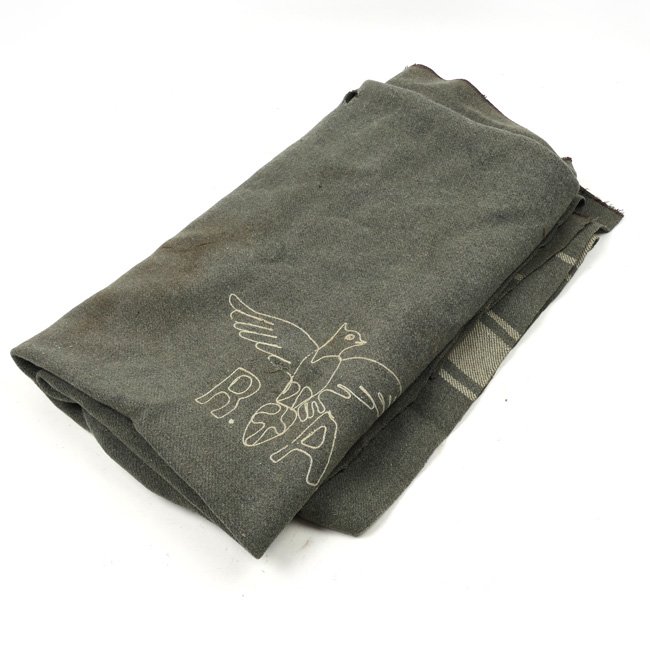 Royal Italian Air Force (Regia Aeronautica Italiana) Blanket. This blanket was recently found in a house cleaning in Germany and probably used by the German Army during World War 2. The blanket is showing the embroiderd Italian Air Force Eagle with the letters 'R.A.' indicating 'Regia Aeronautica'. The blanket is showing some minor damages and is in overall good used condition. The blanket is sized approximately 190 x 160 cms. Nice original blanket!
