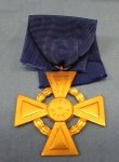 Original era manufacture. Gilded alloy cross with a dark blue ribbon. The cross measures 42 x 40 mm, and on the reverse is marked, Osterr. Ehren Legion 1914-1918. Very clean.