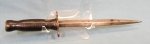 Original era manufacture. A very well made knife, with an 8.5 inch, diamond shaped, stiletto blade. Decorative brass guard, stacked leather grip, formed to fit your hand, with a brass pommel cap and square shaped tang. No visible markings, normal age and wear.