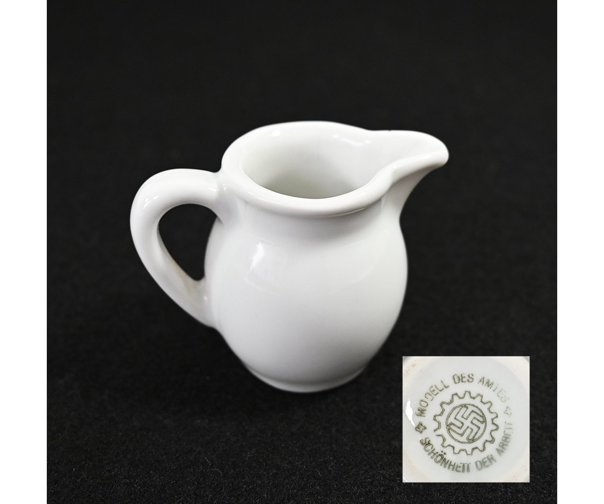 Very nice and hard to encounter porcelain Deutsche Arbeitsfront marked mini (milk)pitcher in excellent condition.