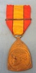 Original era manufacture. A large format bronze medal awarded by King Albert to those troops who served in the front lines during WWI. Silver ribbon clasp indicating 12 months at the front.