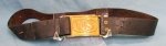 Original era manufacture. Rectangular cast brass buckle, with a US in an oval on the obverse. Pliable, black leather adjustable belt with brass catch and leather slide.Light flaking to the leather surface of the belt, riveted and sewn construction.
