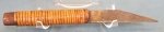 Original era manufacture. Measures 9 inches in length overall, with a 4.25 inch steel blade, with kanji markings on one side. The grip is wrapped in bamboo over a wooden base. Shows wear and use.
