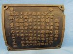 Original era manufacture. A large bronze plaque, slightly curved to fit the breech of a cannon. Old paper tag on the reverse side stating 'Jap nameplate from 5' gun'. Shows some damage around the corners, measures 8x6.5 inches.