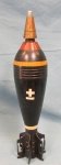 Original era manufacture. A very clean example of the IJA heavy mortar round, which is completely empty of all explosives. The black painted body with red-yellow-white painted trim is an old restoration attempt in my opinion, it is very well done and certainly nothing recently done. The brass fuze is removable with reverse threads, and comes apart into several pieces, it will screw down to rest against the top of the round so it looks proper for display.The body of the mortar is completely empty, with no primer in the base, and the fuse as stated breaks down into several pieces.US SALES ONLY.