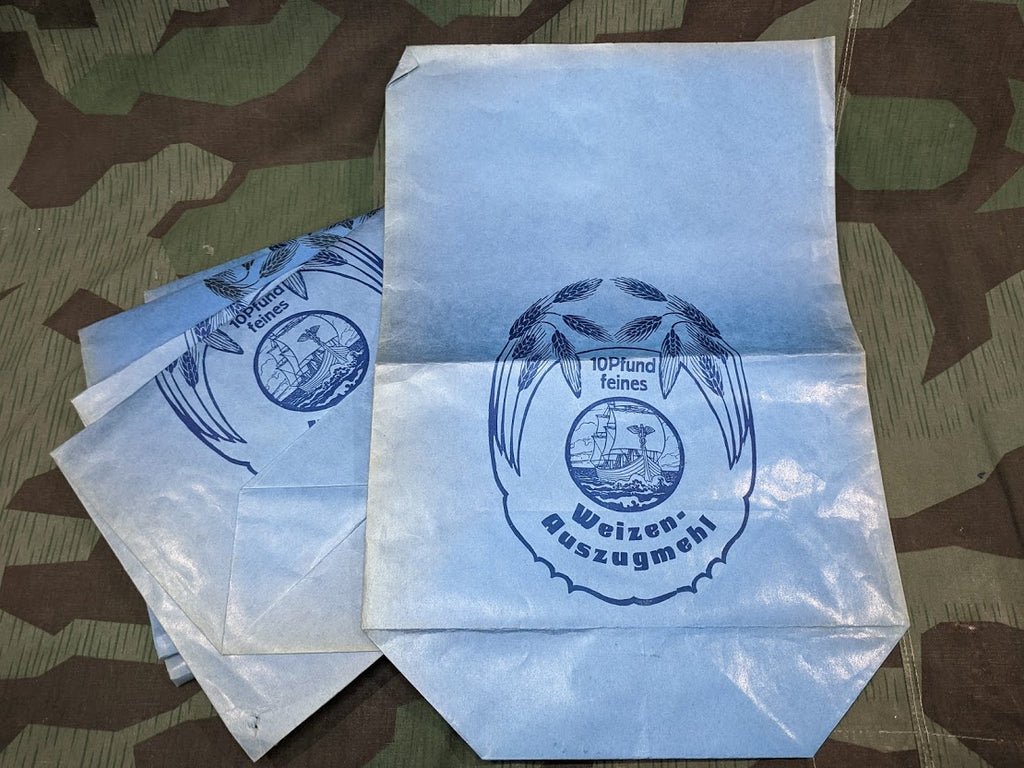 Period paper store bag for Weizen Flour.Price is for three bags.These are pretty big. 10 Pfund (pounds) - interesting that it is measured in pounds and not kilograms. They have some fading and light storage wear. These will ship folded (they were stored folded, so the crease is already there).ADD 3 OR MORE TO CART AND SAVE 15%Discount applied automatically at checkout. Add 3 of ANY items fromthis collectionto save 15%!
