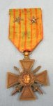 Original era manufacture. Nice period medal with two stars mounted to the ribbon, one bronze for being mentioned in dispatches at the regimental level, and a silver star for divisional level.Nomounting prong suspension, original ribbon shows wear, some light dentingto the reverse on the dated medallion. Many Allied soldiers received the Croix de Guerrefor bravery during WWI, including US Marines of the 2nd Division. This particular example exhibits a lot of 'been there' aura to it, good early war example, with a well used original ribbon.