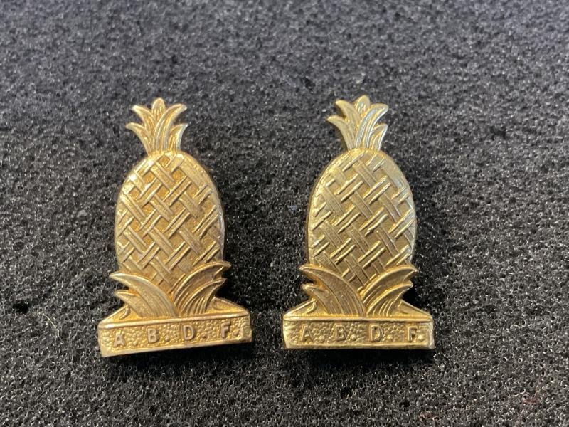 High quality A.B.D.F , Antigua & Barbuda Defence Force officers collar badges.Gilded metal with rear loop fixings.