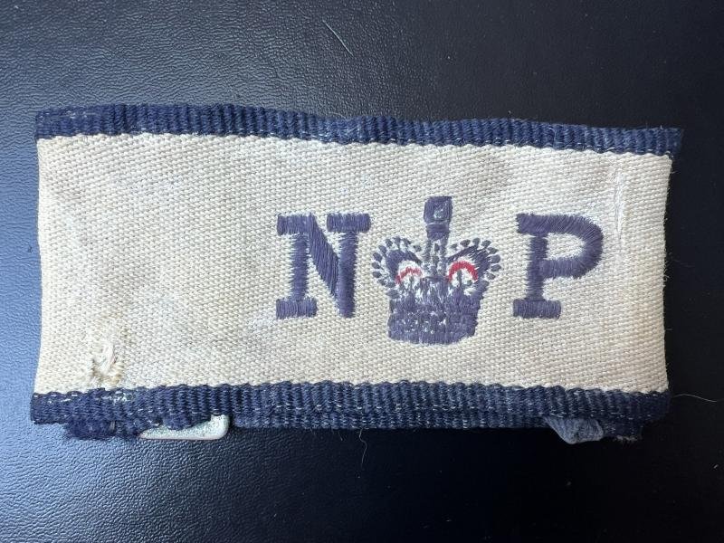 Heavy woven Cotton armband with embroidered NP and Queens Crown early 50s