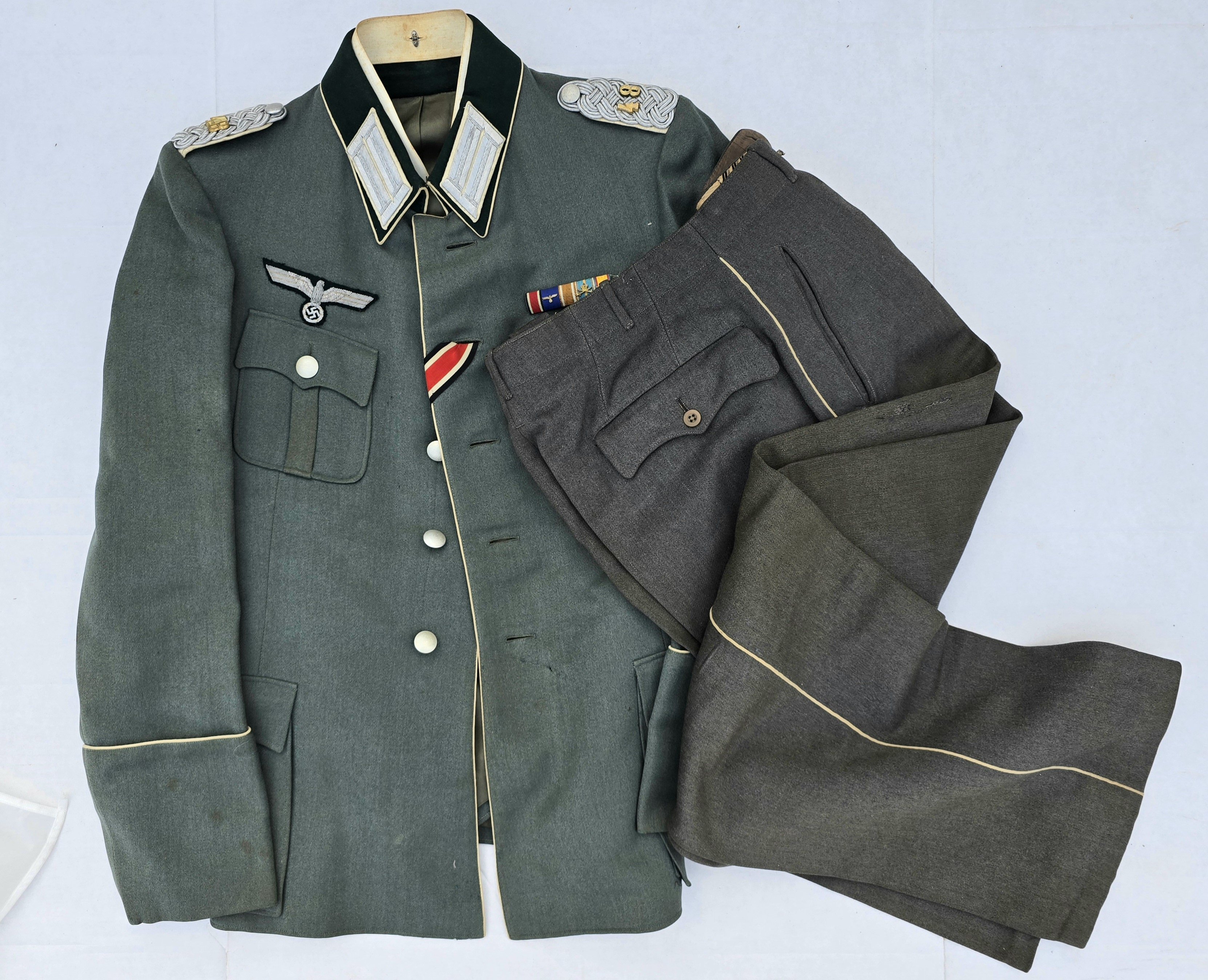 From the Ron Wolin collection is this fine, white piped infantry tunic and trousers of Freiherr von Vohs, from the 48th infantry regiment. A stunning piece of tailoring with no damage, an only light age overall, a beautiful, named piece for the collection. 1938 date on the collar stiffener. Ribbon bar included. COA accompanies.