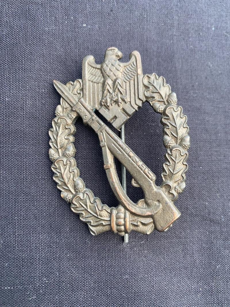 This is a nice reproduction WW2 German Infantry Assault Badge in bronze with a makers stamp on the back.