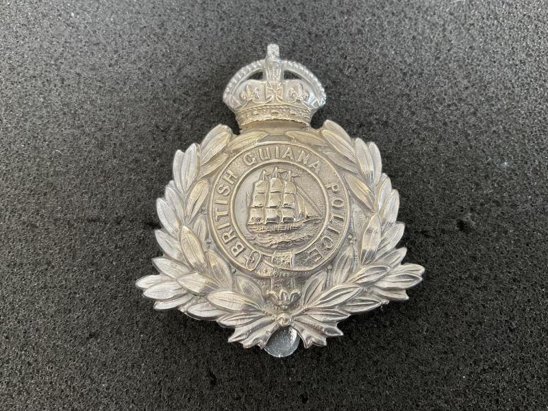 K/C British Guiana Police helmet plate circa 1902-39.White metal badge made by Firmin.