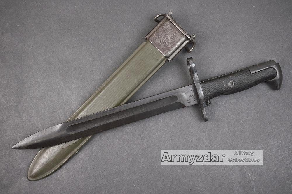 The bayonet is in a very good condition with its original scabbard. Od the blade is marked A. C. and US, on the scabbard U.S. and grenade.