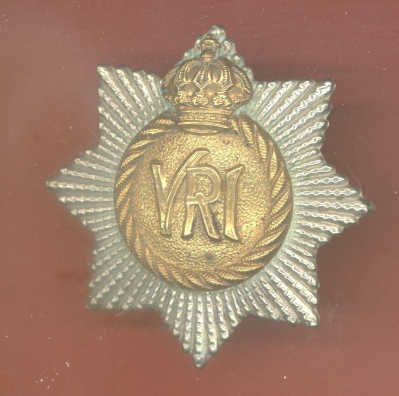 A fine scarce die stamped bi metal example worn circa 1894-1904. Crowned rope circle with 'VRI' to centre set upon eight point white metal star. Two loops to the reverse. VGC. Mazeas MM.7