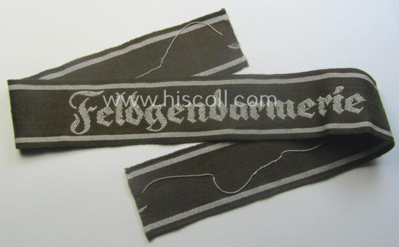 WH (Heeres) cuff-title ie. armband (ie. 'Ärmelstreifen') entitled: 'Feldgendarmerie' (being a typical 'semi-BeVo'-woven example)