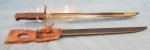 Original period manufacture. Blue finished blade with fullers on each side, hooked guard, contoured wood grips with a flat birdhead pommel. Mix of dark steel patina and very light surface corrosion finish to the guard and pommel, nice blue steel blade displaying normal wear to its surface. Blue steel finished scabbard, which is dent free. Original rubberized canvas frog, with surface cracking at the wrist and just below the belt loops.