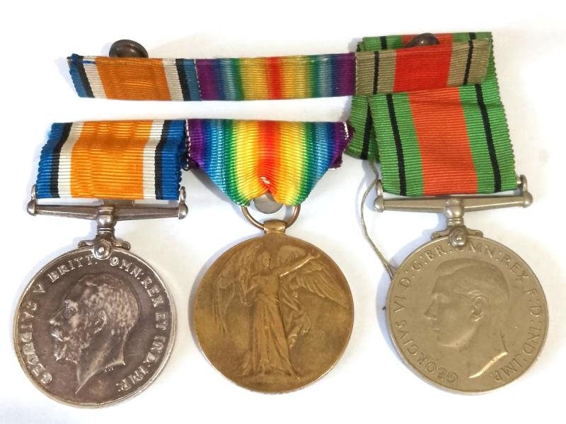 WW1 & 2 Cameron Highlanders Medal Group with corresponding Ribbon Bar.The WW1 consist of the War & Victory both Swing Mounted for wear & are impressed to the recipient ; 'S-25589 PTE A. FRASER CAMERONS'Both medals in our opinion grade as N.V.FThe WW2 Defence Medal is unmarked as issued