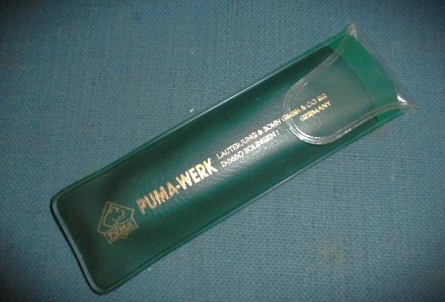 You don't see these often. It's the Huntec with a 3' blade etched cats head logo PUMA 280235 STAINLESS PUMA HUNTEC SOLINGEN GERMANYThe knife is 7.25' when opened with a crosslock release and an aluminium body stamped HUNTEC, and the knife has its original plastic sleeve S/n 02991Price includes UK delivery