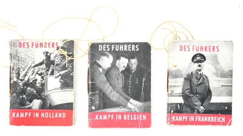 In a very good condition a set of three German WHW Winterhilfswerke Pocket Booklets from Adolf Hitler called, Kampf in Holland, Kampf in Frankreich and Kampf in Belgium.