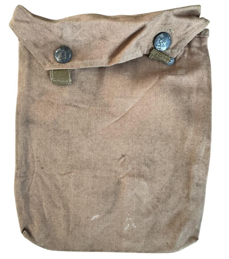 Wehrmacht (Heer) Tropical Gascape Pouch (Gasplane Tasche). Executed in a khaki tan fabric. Marked '2037' in the interior. Some minor rust on the press studs. In overall nice used condition.