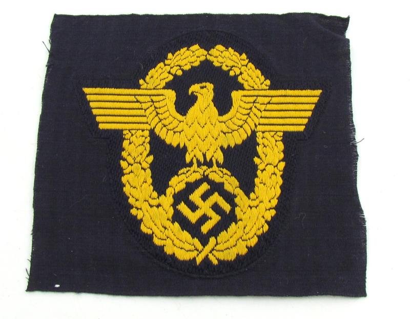a nice example of a 'Wasserschutzpolizei' (Water Protection Police) BeVo-woven arm-eagle.The eagle is executed in golden-yellow coloured linnen on a dark-blue coloured linnen background. Nice original eagle in mint and unissued condition.Hard to find example!