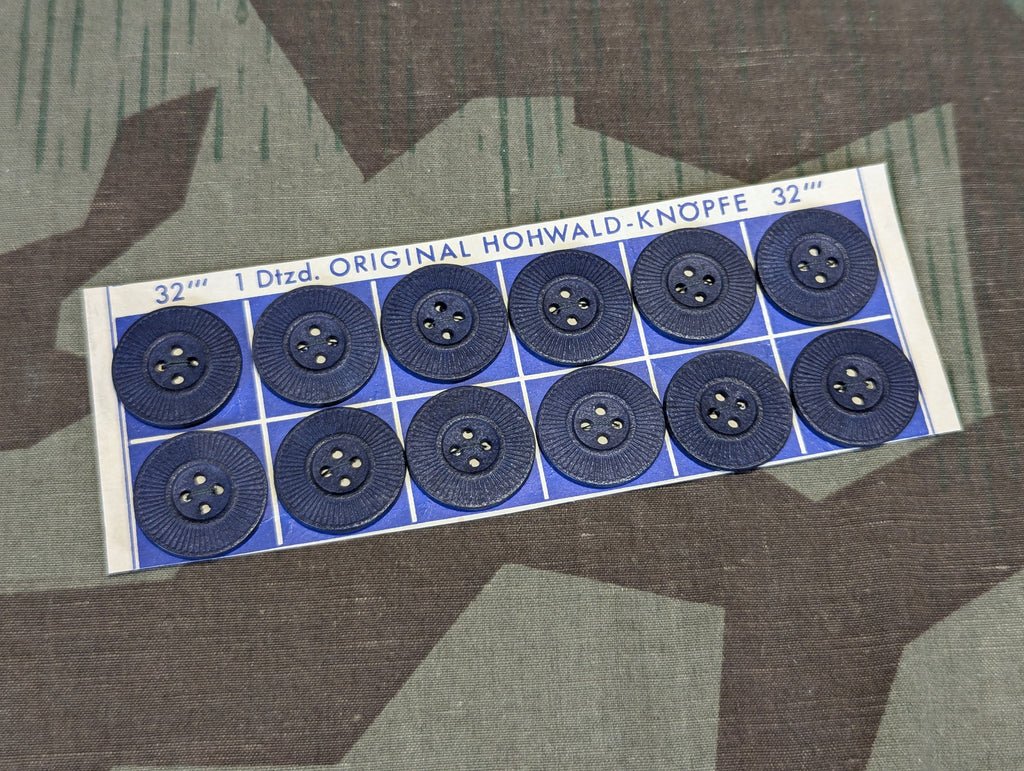 German new old stock paper card with 12 dark blue pressed paper 20mm buttons.