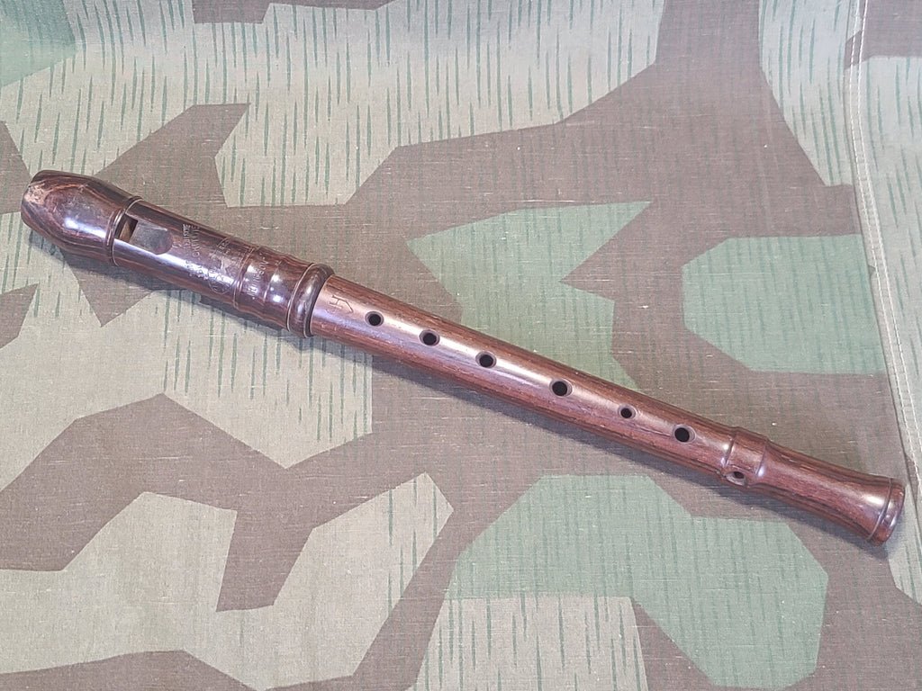 Wartime or pre-war Sudetendeutsche Blockflöte recorder. Made by Karl Hammerschmidt Söhne, Watzkenreuth bei Fleissen. The company was relocated in 1945. Some general overall wear and some wear on the mouthpiece.More info here.