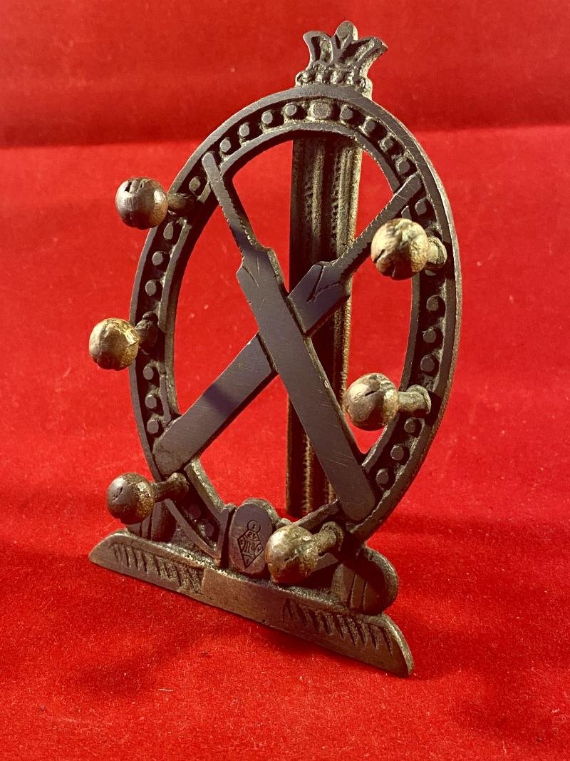 Here on offer is a cast bronze Victorian cricket award, quill-pen desk stand, circa 1879.It consists on an oval shaped front section with two crossed cricket bats fixed in the centre and the oval edges are fitted with six pegs enabling it to support three quill-pens. At the top it has the image of a small crown.On the lower edge of the oval is has a clearly stamped diamond registration mark, which dates it to 25th July 1879, being the exact date, this design was registered.On the back it has an easel style support, to enable it to be sat on a Victorian desk.A really interesting piece that can still be used today and makes a great present for any cricket fan!It measures 4.2' (10.5cm) high by 2.6' (6.8cm) wide and weighs 90g.Please see my pictures for the details of the condition, which complement this description.Please see my TERMS OF BUSINESS regarding Deliver Charges and Insurance regarding additional insurance cover, should you require it, BEFORE the item is dispatched.The responsibility lies with the customer to check with your Customs restrictions that this item can be imported into your country.