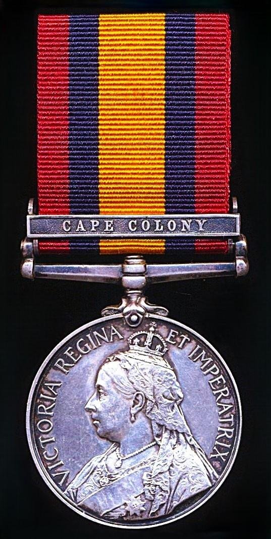 Medal & Clasp Verification: The medal and clasp to Private Hobson is confirmed as entitled per the respective campaign medal roll for the Army Ordnance Corps referenced below:- QSA Medal with clasp 'Cape Colony': WO 100/233 . The medal roll compiled & signed at Pretoria, South Africa on, 6 September 1901Abraham Hobson son Abrham Hobson (who resided at Shop Street, Drogheda) was a native of the parish of St. Peters, Drogheda, County Louth, Ireland. He was 18 years of age, and prior employed as a 'Clerk' when he enlisted in the British Army at Dundalk, Ireland, on 16 January 1888. On joining the British Army he was posted to the Royal Irish Fusiliers, and after completing his basic training was posted to 2nd Battalion Royal Irish Fusiliers. He transferred to the Army Ordnance Store Corps on, 3 September 1890. He was posted to the Army Reserve on, 16 January 1895, and was recalled to 'The Colours' when mobilized for overseas service on, 9 October 1899. Abrham re-joined his old corps, the Army Ordnance Corps and served overseas in South Africa between 18 November 1899 until 20 December 1900 (1 year 33 days). Abraham Hobson took his final discharge from the British Army on,15 January 1901, by which time he had served a total of 13 years reckonable service towards pensionThe recipients service papers (WO/97 file series) are extant and accessible at The National ArchivesCondition: GVF