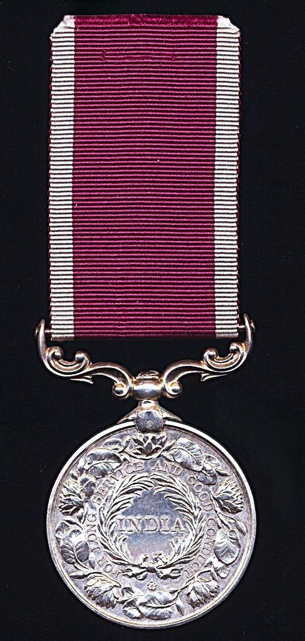 India Long Service and Good Conduct Medal. GV first type with Kaisar-i-Hind' obverse legend (10170 L-Daf. Amir Ullah, Khan, 15 Lrs.)