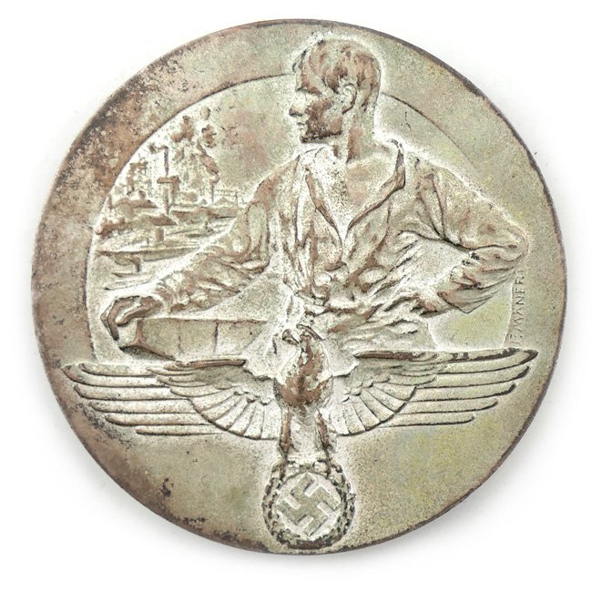 German Loyal Service Plaque (nichttragbare Plakette). The table-medal was awarded for many years of loyal service by the Reichenberg Chamber of Commerce and Industry (Die Industrie-und Handelskammer in Reichenberg für langjährige treue Mitarbeit). The plaque is having a diameter of 60mm and was designed by 'F. Mäntert'. Decorative original medal!