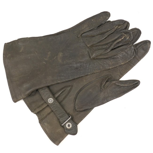 This is a nice pair of Wehrmacht Officer's gloves (Handschuhe für Offiziere). Made of dark grey coloured smooth leather. The gloves are not visible maker marked or dated. This would be a great addition to an Army or Luftwaffe Dress Tunic (Waffenrock). Nice original pair of gloves in good used condition!