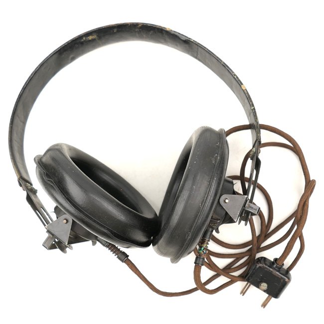 Wehrmacht 'Dfh.b' Armored Vehicle or 'Panzer' Headphone (Doppelfernhörer). The headphone is marked with 'Dfh.b' indicating 'Doppelfernhörer' model 'B'. The Dfh.b headphone is the standard type Wehrmacht headphone as used by most armored vehicle/panzer crews. Complete with the rubber ear-cups, these are still in very good and supple condition. The headphones are marked 'Dfh.a' and dated 1942. The headphone is complete with original wire and plug. Rare original Panzer Headphone in good condition!