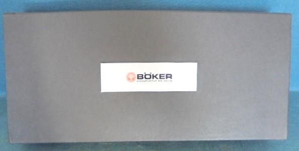These are a difficult knife to find, with this having a 7.95' clipped blade and stamped logo BOKER SOLINGEN GERMANY STAINLESSThe knife is 12.75' overall with a 4' S-shaped crossguard and an oak wood grip, and it has its original leather sheath and box S/n 02998Price includes UK delivery