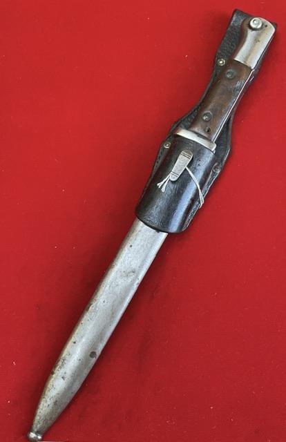 Blade maker marked to J Memlich, nice condition slight staining to tip, press stud in working order, scabbard in good condition, comes with leather frog.