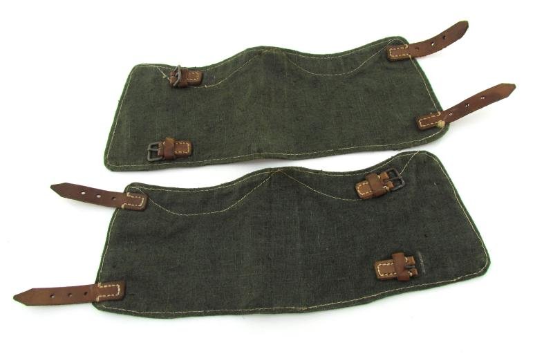 A nice late war matching pair of Gamaschen to be worn on top of the M37 Schnürschuhe. Nice pair with brown leatherMarked but hard to readhard to upgrade!