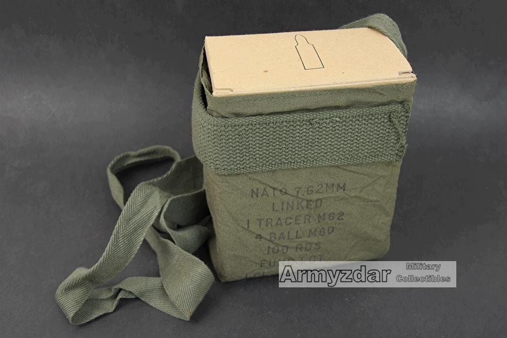 This is a very nice bandoleer for M60 ammo including paper box. This is a second type made June/1967.
